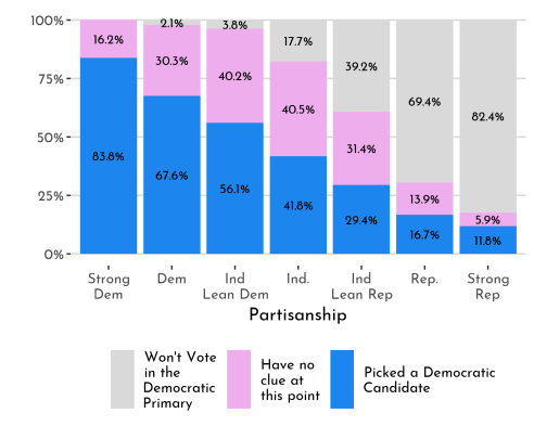 Figure 2 – Who is Active in Selecting a Democratic Nominee? Who has an opinion, by Partisanship.