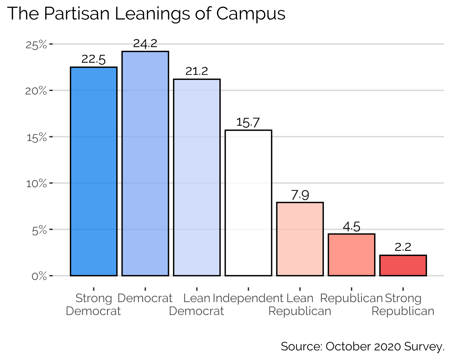 As we’ve seen before, campus is overwhelmingly Democratic (see below) and that advantage has been growing for the last decade – campus is ⅔ Democratic and Republicans number under 20% of the student body according to our results. There’s also been a big jump in strong Democrats – they were about 12.9% in March of 2019, but now number almost 23%. So, the Democratic advantage is increasing and intensifying.