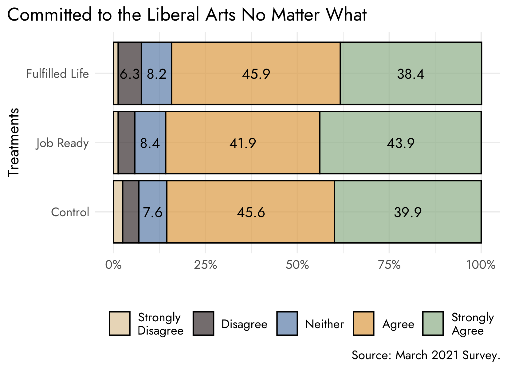 My experiences here on the Hill made me wonder about what my fellow Denisonians thought about a liberal arts education, especially if they thought differently about the liberal arts when asked to consider career readiness versus life fulfillment. While a liberal arts education extends beyond the classroom, the curriculum itself is at its core. So, in Dr. Djupe’s March 2021 campus-wide survey, we asked students whether they agreed or disagreed with the following statement: