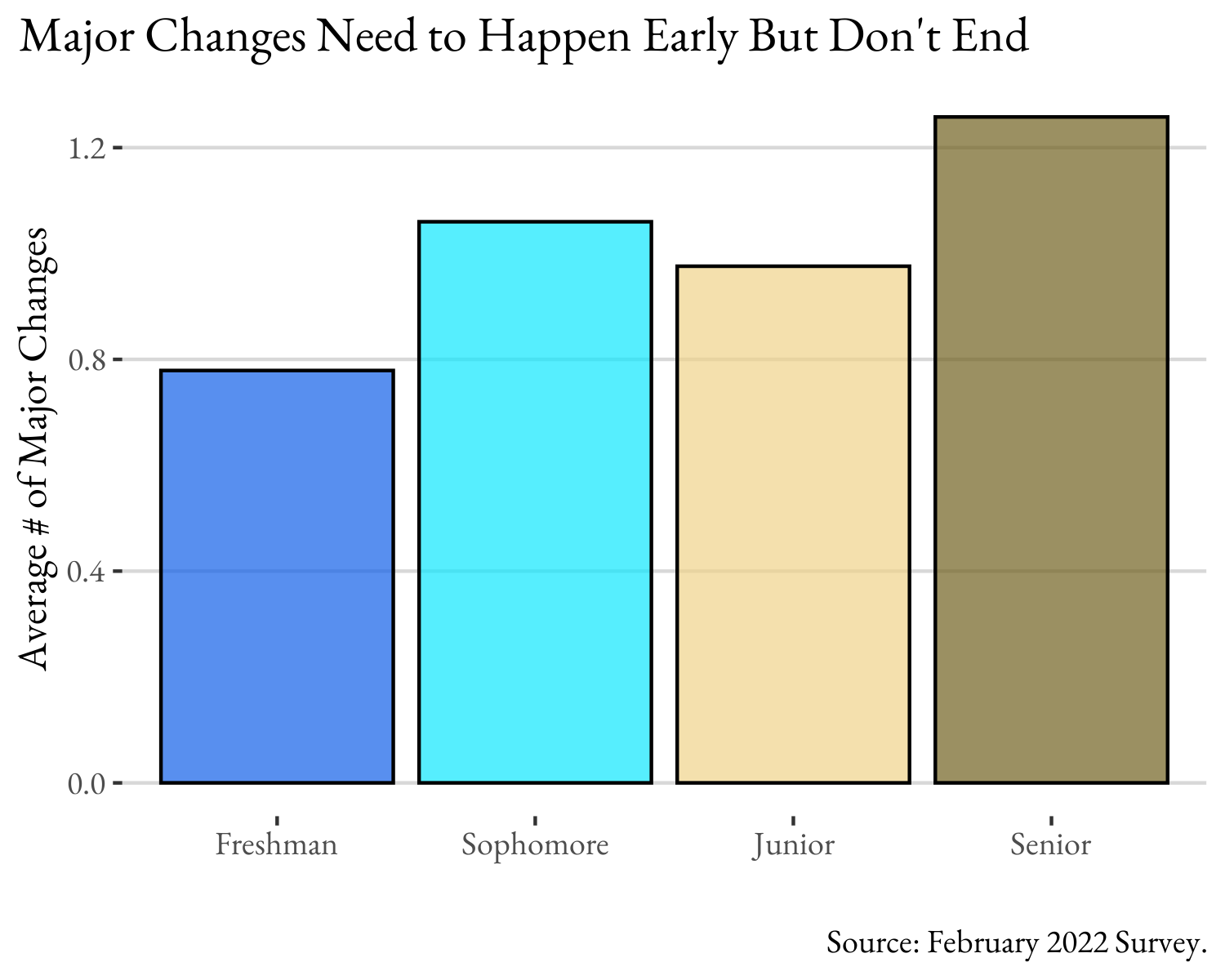 You are required to have a major selected by the end of sophomore year, but that doesn’t mean that the process of choosing a major ends at that point. Some were torn initially and later decide to pick up a second. Some start long majors (e.g., PPE) and then decide to just pick one leg (e.g., Econ). Things happen. So, there’s a bit of a bump after freshman year, but it’s a pretty small one – most all of the process of picking a major is done freshman year.